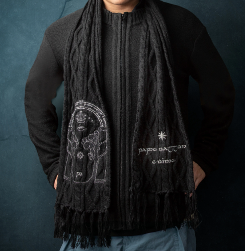 Enveloppez-vous de la magie de la Terre du Milieu™ avec cette écharpe inspirée de la légendaire Porte de la Moria™. Confectionnée dans un tissu doux et confortable, elle est ornée de motifs détaillés qui reprennent fidèlement les inscriptions elfiques et symboles visibles dans Le Seigneur des Anneaux™. Élégante et unique, elle est l’accessoire idéal pour affronter le froid avec style, tout en affichant votre passion pour l’univers de Tolkien™.